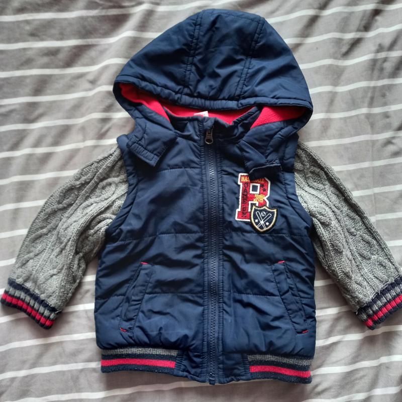 Курточка у вигляді бадоновлї безрукавки із в'язаними рукавами на ріст 86 см, з теплим підкладом на весну , осінь.