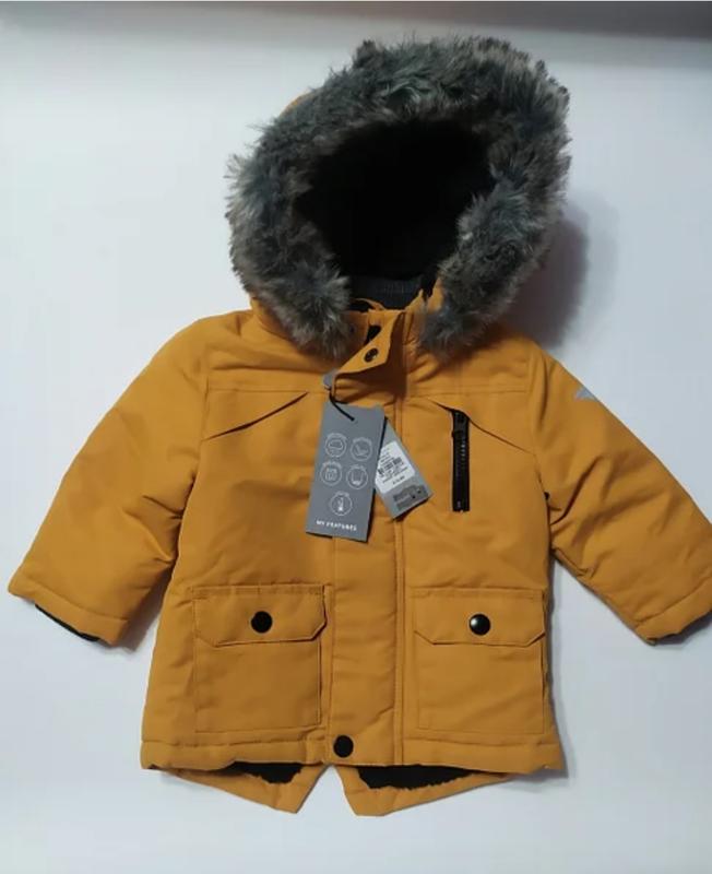 Парка для хлопчика англійського бренду Primark. Завдяки сучасній екологічній технології має вітрозахисні, водонепроникні та дихаючі властивості. Колір - жовтий. · М'яка і тепла хутряна підкладка всередині куртки. · Рукави куртки мають внутрішні трикотажні манжети. · Дві кишені на кнопках. · Незнімний капюшон з м'якою, теплою хутряною підкладкою всередині і хутром (несьемным). · Застібка – блискавка і кнопки. · Подовжена спинка. Можна носити 3 сезони - зима, весна, осінь. В наявності розмір на зріст 62/68 (3-6міс), 68/74см. (6-9 міс.)