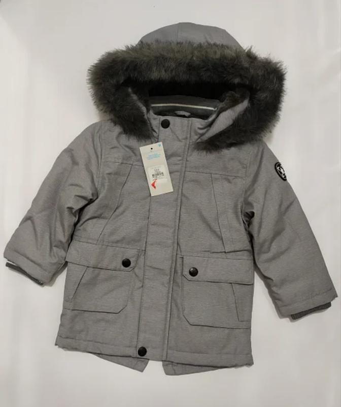Парка для хлопчика англійського бренду Primark. Тканина щільна і водовідштовхувальна. Завдяки сучасній екологічної технології має вітрозахисні, водонепроникні і дихаючі властивості. Хутро на капюшоні не відщіпається. Колір - сірий. · М'яка і тепла хутряна підкладка всередині куртки. · Рукава куртки мають внутрішні трикотажні манжети. · Дві кишені ззовні на кнопках. · Незнімний капюшон з м'якою, теплою хутряною підкладкою всередині і хутром. · Застібка - блискавка і кнопки. · Подовжена спинка. В наявності розмір на зріст 92 см