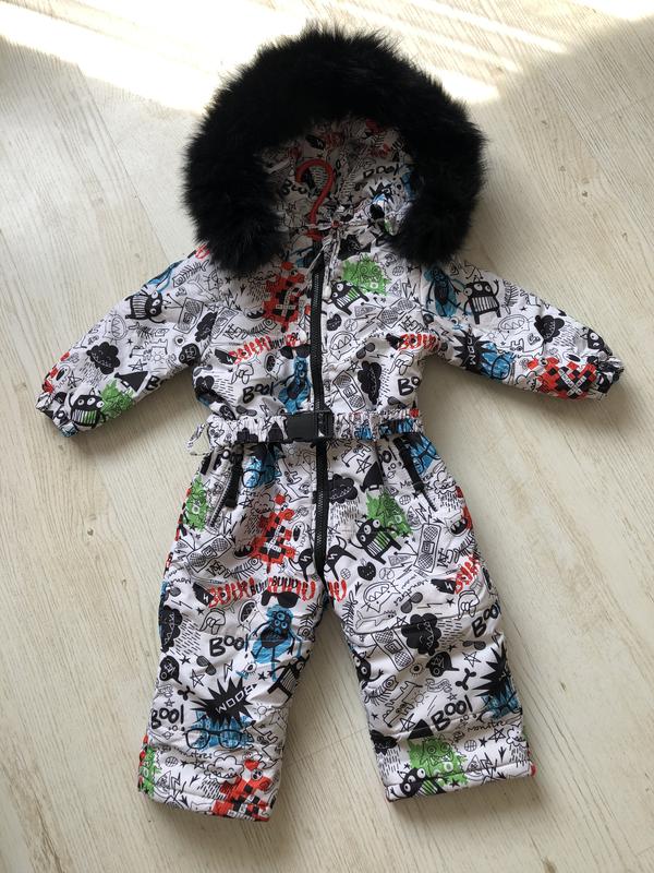 Тёплый зимний комбинезон на мальчика. Мех натуральный. Капюшон и мех снимаются. Внутри подкладка флис кроме рукавов. Рост 86-92. Замеры вышлю.