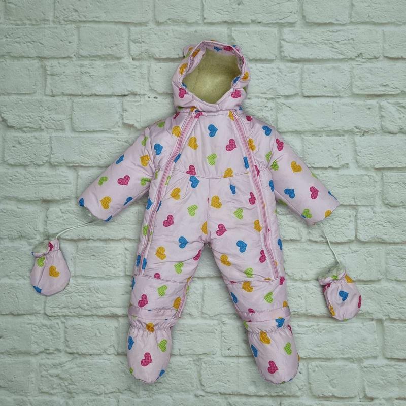 Теплий, легкий ,практичний комбінезон-трансформер. В комплекті: рукавиці, пінетки ( всередині -хутро) Комбінезон-трансформер (робиться конвертом) Наповнення: "набивна овчина" Виробництво Україна Довжина-86см Від шиї до плеча-10см Від плеча-28см Крок-Довжина 34см в конверті-72см.