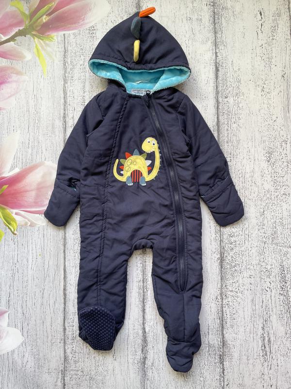 Крутой деми комбинезон с капюшоном динозавр M&Co 9-12мис, на флисе, ножки ручки закрываются