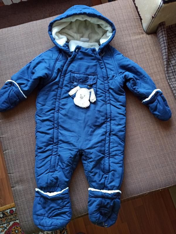 комбинезон для мальчиков, возраст 9-12 месяцев,на подкладке, длина 64 см, ПОГ 37 см, "варежки", " сапожки" отстегиваются, на двух молниях, -рабочие, капюшон не отстегивается,