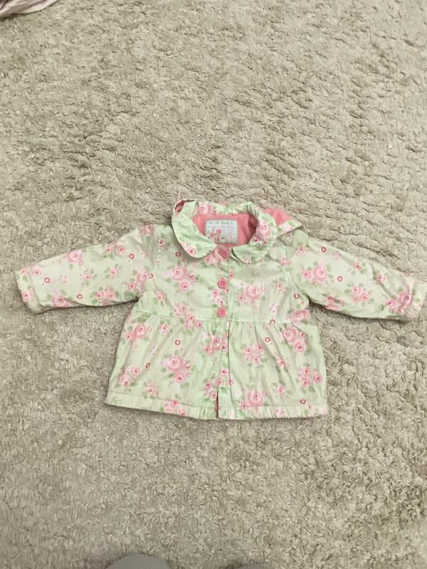 Дитячий плащик, утеплений, у середині-фліс. Колір: салатовий з квітами. Розмір:80-86