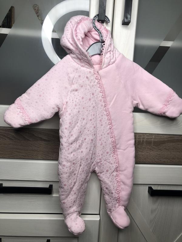 Мягенький, теплый комбинезон, на возраст от 0 до 3 мес ( можно и дольше )