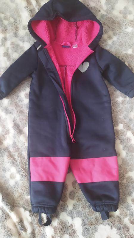 Softshell - однослойный материал, с изнаночной стороны флис, мембрана и гладкая верхняя поверхность. Непродуваемый, непромокаемый, легко чистится - отличный вариант для прохладной погоды. Рост 74-80 см 6-12 месяцев.