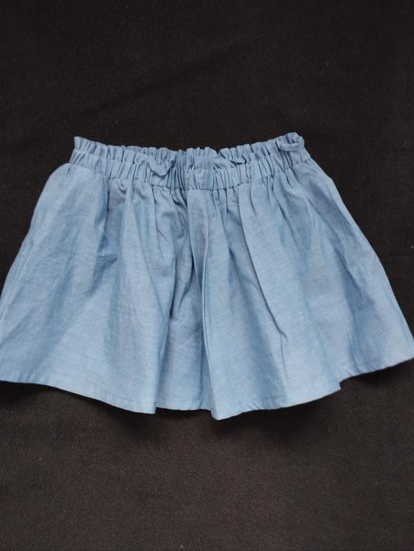 Легка блакитна спідничка на резинці, стан новий. 100% коттон, без підкладки. Див. заміри на фото.