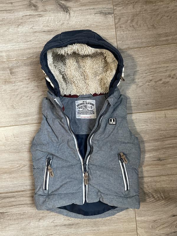 Деми жилет Next с трикотажным капюшоном щу плюшевым мехом. Размер 9 - 12 мес.