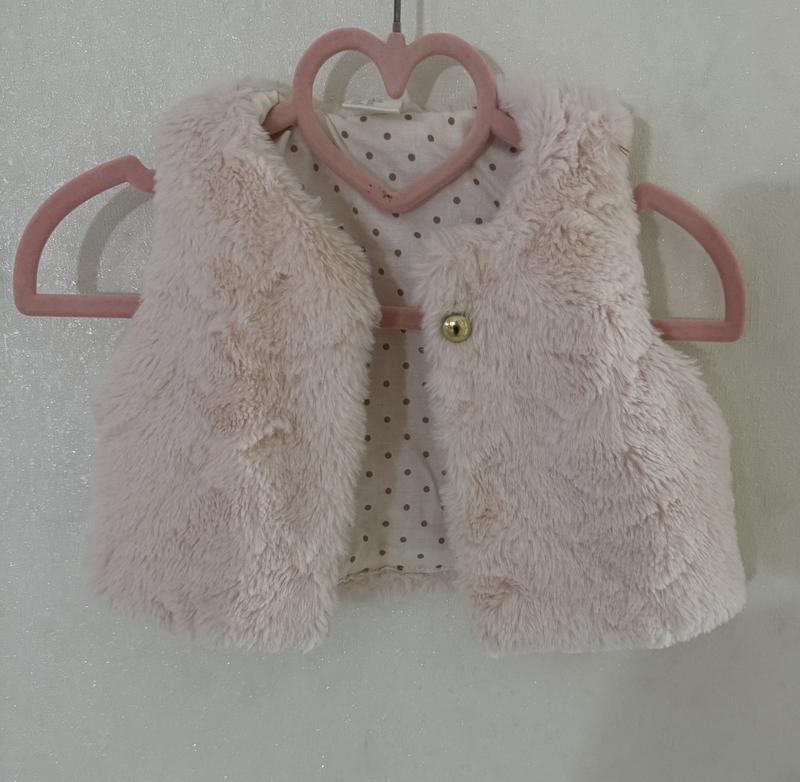 Жилет из искусственного меха на подкладке, имеет сверху пуговицу, размер 68