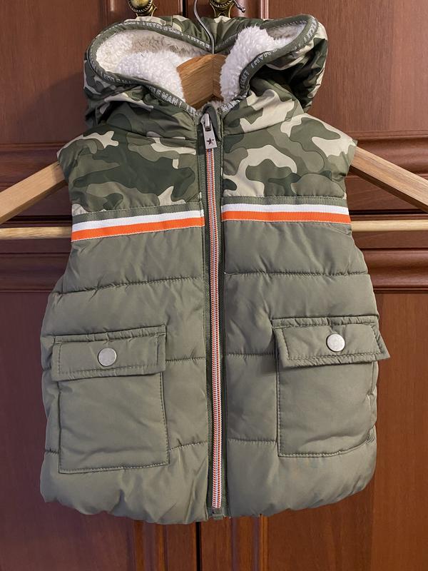 Теплая жилетка на мальчика 6-9 месяцев (жилетка на синтепоне, а также искусственный мех внутри). Стан 10 из 10, формую абсолютно новую.
