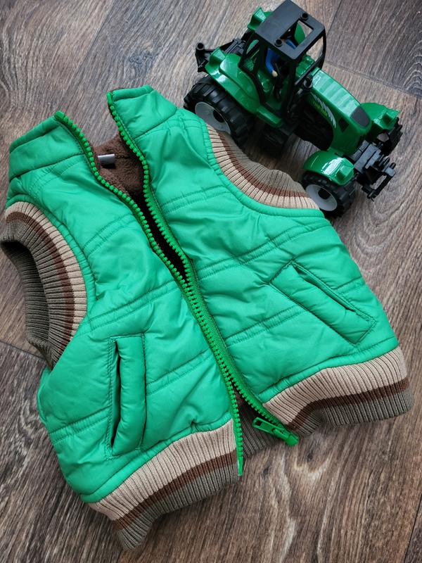 Теплая детская жилетка зеленого цвета на мальчика 6-9 месяцев.