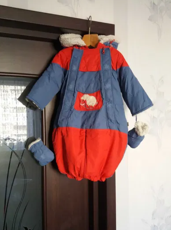 Комбинезон на теплой шерсти. Зимний.Стан на 5. Красный-голубой. Можно для мальчика и девочки. до 1,5 года. Ножки можно делать конвертом.