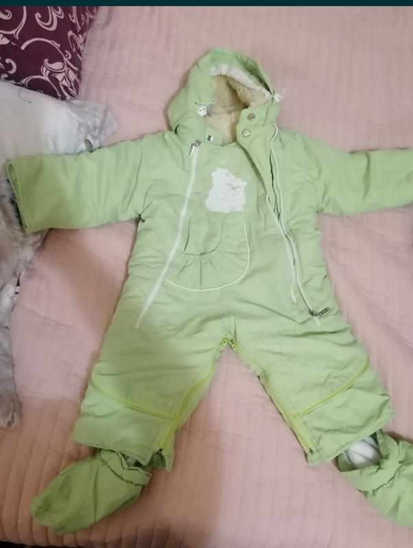Очень красивый комбинезон. Состояние очень хорошее. Комбинезон 2в1. На овчине и флисе. Овчье можнл отстегнуть и останется весна-осень флисе. Размер 80.Замеры по запросу. Цвет фисташковый.