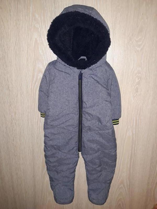 Фірмовий демі комбінезон хлопчику на 3-6 міс. Застібається на блискавку, всередині до половини утеплений хутра. Стан відмінний Виміри: довжина по спинці від плеча 60 см, кроковий шов 27,5 см, довжина від плеча до памперса 42 см, ширина між пахвами 32 см, плечі 23 см, рукав від плеча 22 см, по внутрішньому шву 14 см
