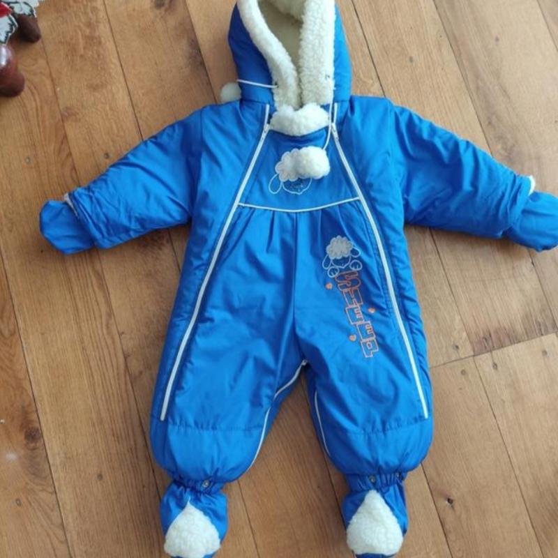комбинезон зимний на овчине, очень теплый, удобно переработать в конверт, где не нужно задвигать ножки. в идеальном состоянии, не одевали ни разу,