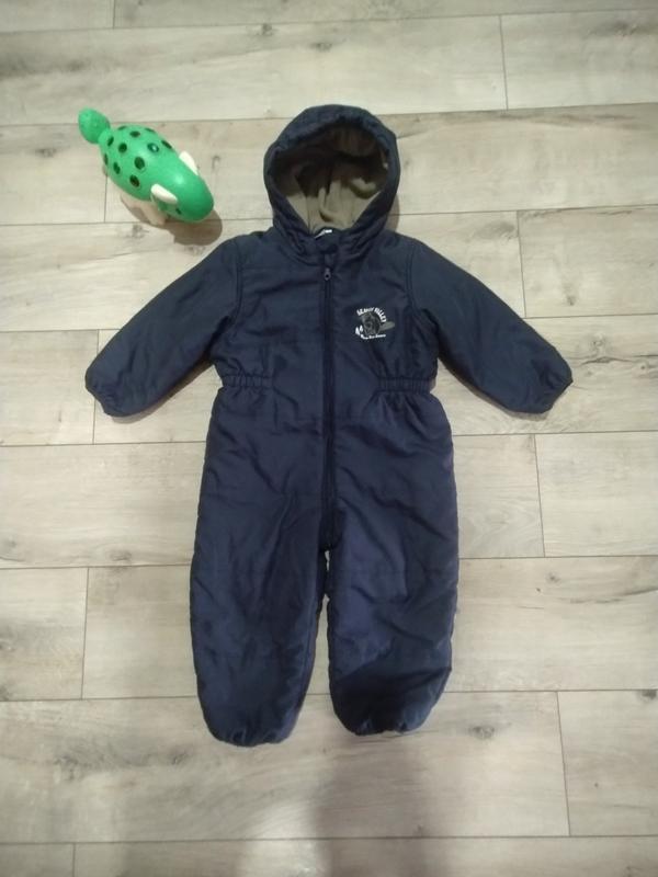 Демисезонный комбинезон impidimpi, размер 86/92. Утепленный слоем тонким синтепона +до пояса утеплен флисом, рукавчики и ножки без флиса. Верхняя ткань очень мягкая и приятная. Стан идеален, быстро выросли. Очень удобный, не сковывает движения ребенка. Цвет темно-синий ближе к черному. замеры длина от плеча 81 см длина шага 32 см длина рукава без плеча 33 см ширина плечей 30 см полуопват груди 38 см длина до подгузника 47 см.