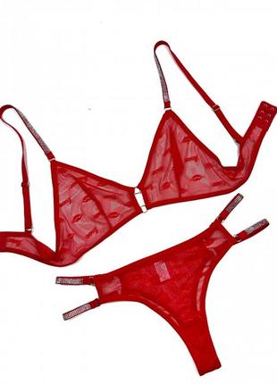 ❤️🔥vs👑шикарний комплект червоної білизни топ/корсет із мереживом
