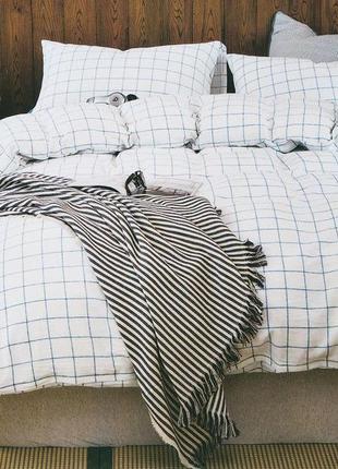 Білий комплект постільної білизни в клітинку, 100% бавовна, різні розміри