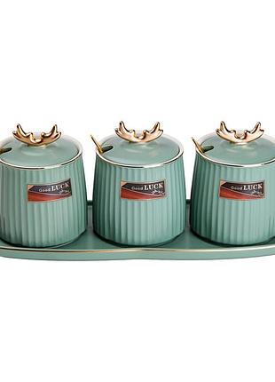 Керамические банки, подставка для сыпучих продуктов, набор из 3, 400 мл, для чая, кофе и сахара, зеленые.