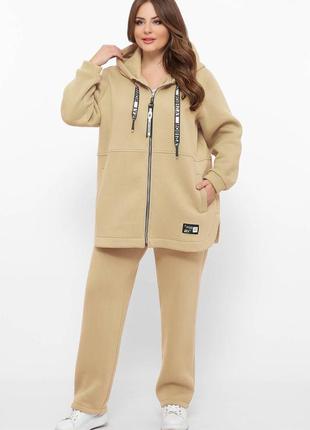 Жіночий велюровий спортивний костюм з жилеткою 46-68 розміри