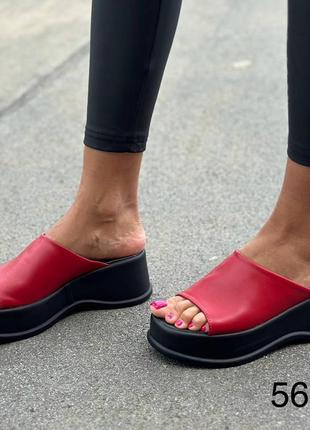 Шлепанцы женские кожаные на платформе 36-41 красная кожа