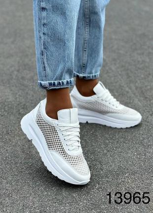 Модные кожаные женские белые кроссовки весенне летние натуральная кожа весна лето