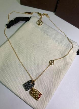Подвеска с двумя кулонами и логотипами, цепочка позолота, люкс качество, бренд