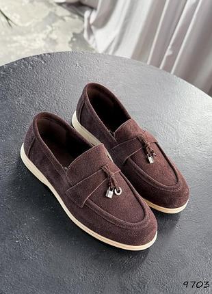 Шоколадные лоферы натуральная замша 36,38-41р код 11708