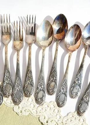 Набір десертних приладів (ложки, виделки) зід мельхіор мнц "малюнок фаберже"