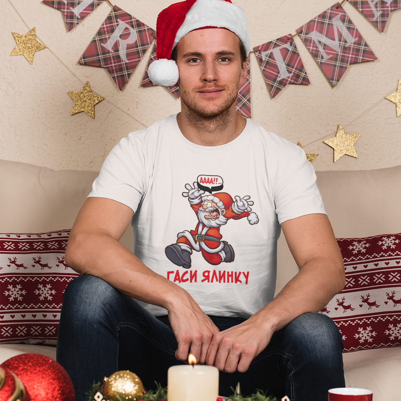Футболка с новогодним принтом "гаси елку. Святого мыколой в панике" push it. новогодняя фу...