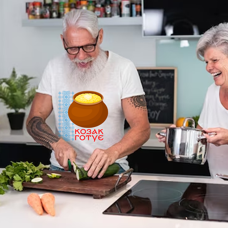 Футболка мужская с оригинальным принтом "козак готовит. каша. украинский орнамент" push it