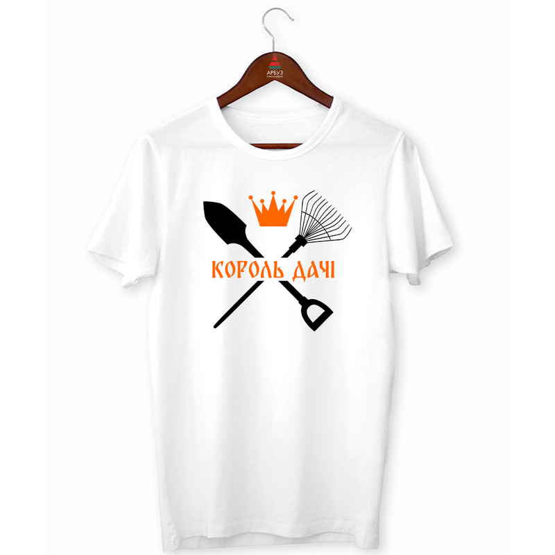 Футболка з оригінальним принтом для дачників "король дачі. схрещені лопатка і граблі" push...
