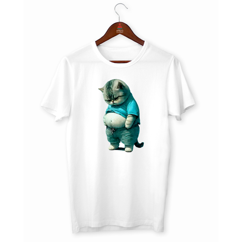 Футболка чоловіча з оригінальним принтом "кіт пузань. fat cat. товстий кіт" push it