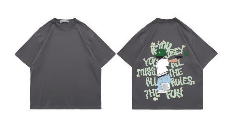 Sparclen™ Rebel Flow — "If You Obey" Tee — футболка с характером, для тех, кто живёт по своим правилам. На спине — дерзкий мультяшный принт с надписью "If you obey, you miss all the fun". Эта фраза — напоминание: настоящий кайф начинается там, где заканчиваются рамки. Изготовлена из 100% мягкого, дышащего хлопка, футболка обеспечивает комфорт на каждый день и выдерживает активный ритм городской жизни. 🔥 Sparclen™ — стиль для тех, кто не боится выделяться.