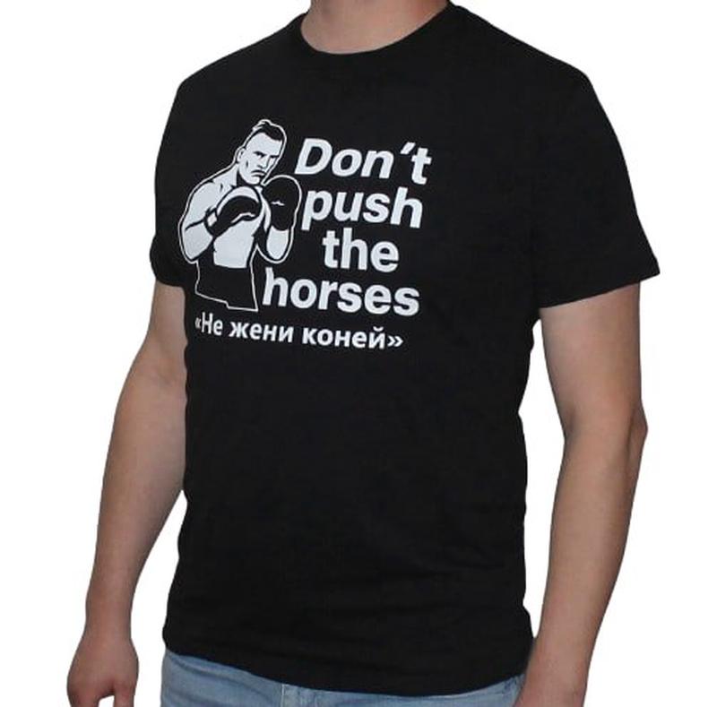 Мужская черная футболка с принтом и надписью "don't push the horses" патриотическая футбол...