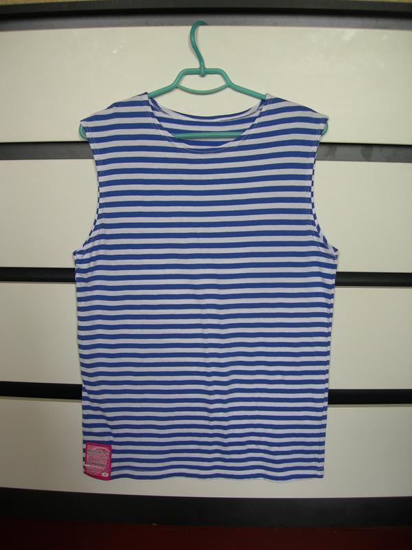 Продаю очень модную в этом сезоне майку в синюю полоску! Тканина бавовна! Производитель: Украина! Размер: 48 - 50! ПОГ - 48см. Длина - 72см. Если заинтересует пишите ответ на все вопросы!