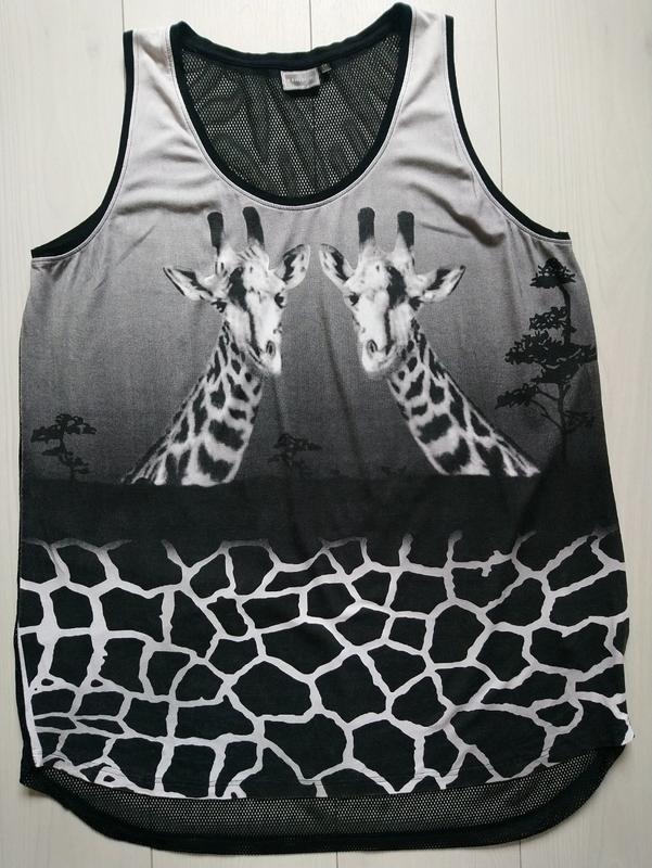Майка в дуже хорошому стані Спереду 95% віскоза і 5 еластан З-заду сіточка поліестр Розмір XL, EUR 48/50 Еластична Довжина 82 см Півобсяг грудей 60 см