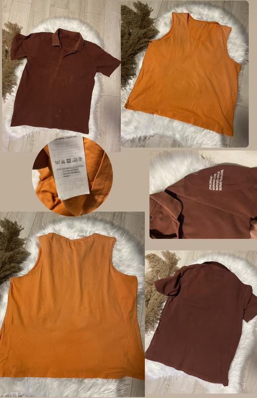 Фото на тілі нема) Майки неидеальные, на них есть пятна, они подойдут для черновой работы, ремонта,стройства, то что) Нюансы в цене учтены, продается так как есть без возврата и без притензий) Длина бордового поло 72 см) Плечи 48 см) Рукав 27 см) Пог 57 см) Пот 57 Снизу 61 см) Длина оранжевой 65 см) Плечи 42 см) Пог 64 см) Пот 62.5 см) Снизу 68 см) Подойдет на размер xL-xxL европейский ориентуйтесь по замерам