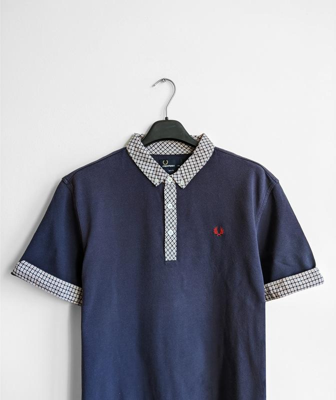 Сине поло с рукавом и воротником в клетку, рукава с подворотом размер хл стан хороший