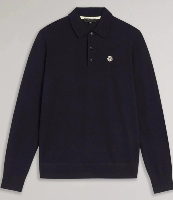 Ted baker 100% шерсті. чорна сорочка поло з довгим рукавом. вовняний светр.
