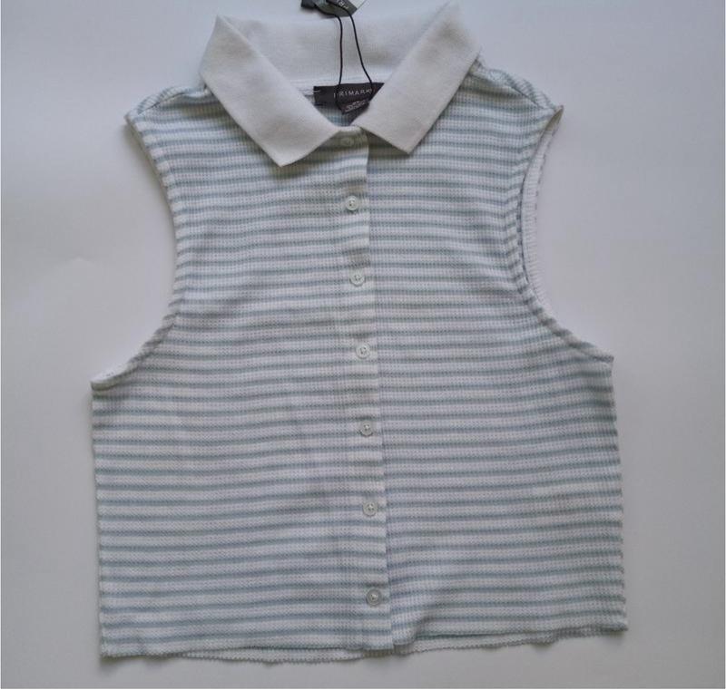 Топ кроп поло рубчик в полоску тоненьку горизонтальну на ґудзиках Длина 42см Пог 37 см Ширина низ 35 см Плечи 31 см Эластичность +5 см