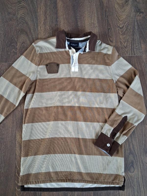 Бежевого цвета мужское поло,размер с,длина 70см,плечи 42см,длина рукава 64см.Ткань коттон.