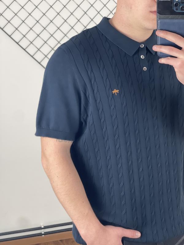 Темно синє мʼяке поло easy з косою і логотипом, футболка з коміром, олд мані, old money