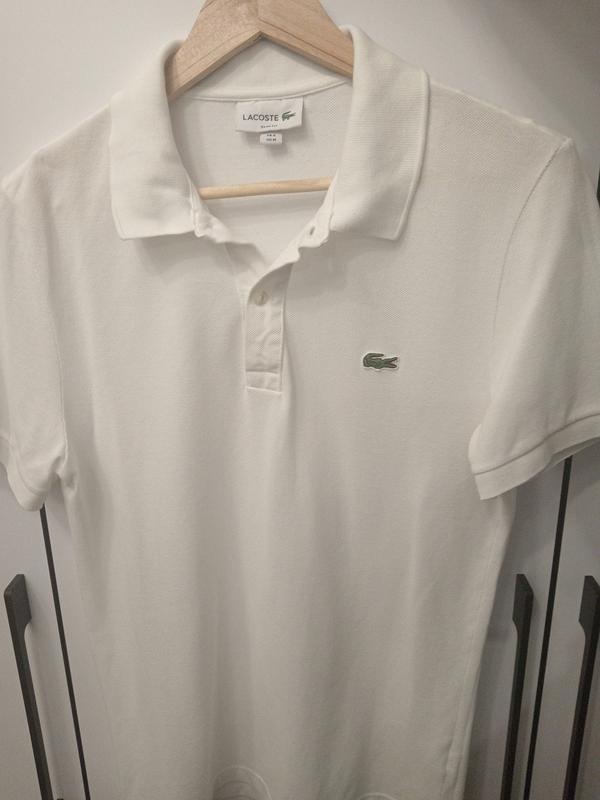 Поло Lacoste slim fit классический белый. Высочайшее качество, легкая, приятная. Как на каждый день так и на встрече. Высота 69 Груди 46 Плечи 41