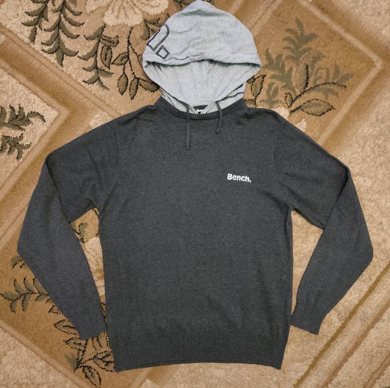 Джемпер Bench с капюшоном. Состояние отличное. Размер мужской М. 100% cotton. Цвет темно серый.