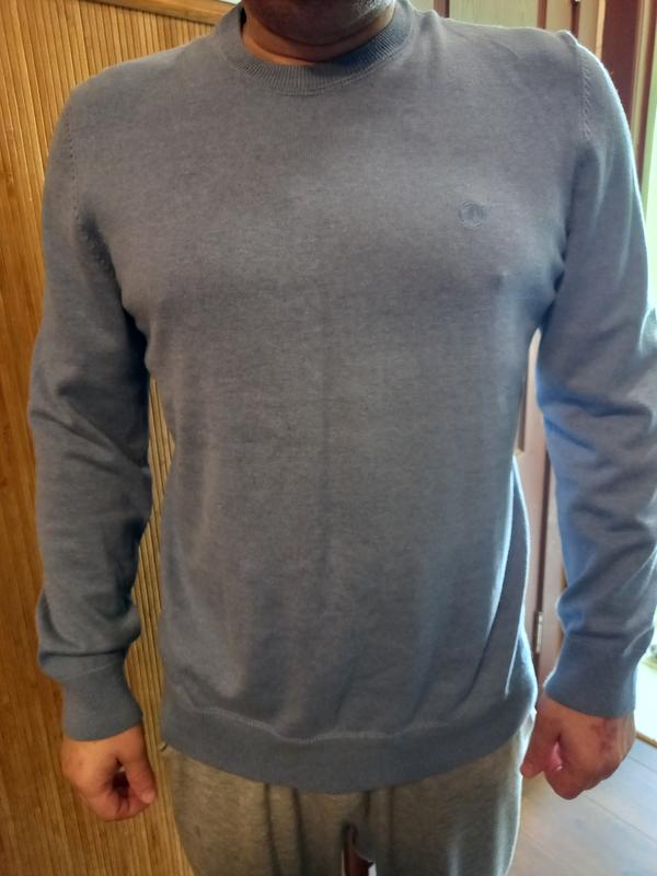 Кофта мужская торговогобренда s.Oliwer,,размер L,48.цвет сизый,манжет на рукавах и на поясе.Рукав 65,длина спинки 74,ширина пояса 64см.Ткань мелкий трикотаж .