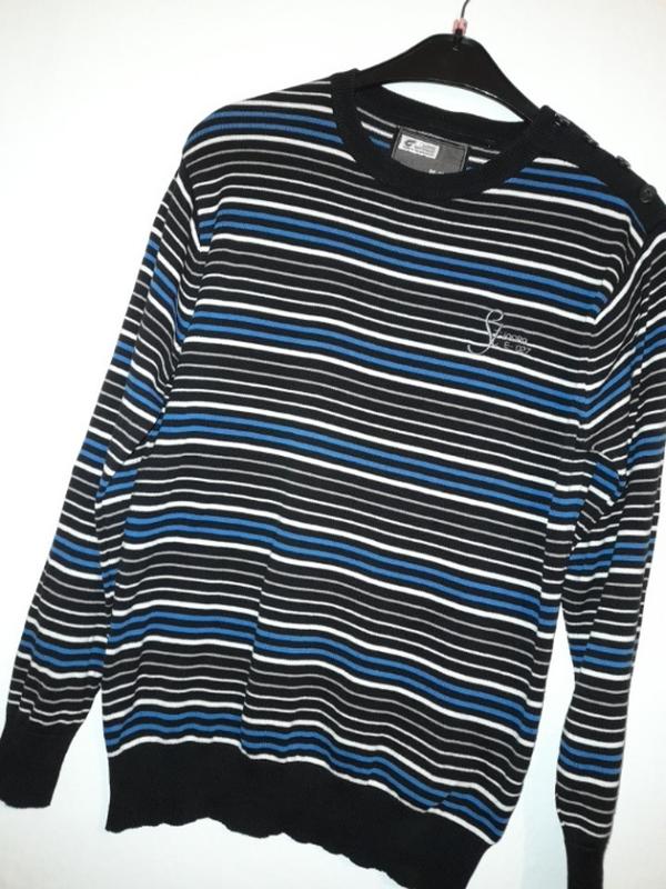 Джемперок в полосочку. Очень красивый, цвет ближе как на последних фото.. Под джинсы великолепный 👍на одном плече 4 пуговки. Состав 100 % коттон Длина 70 см Плечи 48 см Рукав 65,5 см ПОГ 51 см ПОТ 48 см Манжет 38 см Джемперок немножко тянется Смотрите мои другие объявления Отправка Укр или Новой почтой Оплата на карту Приватбанка