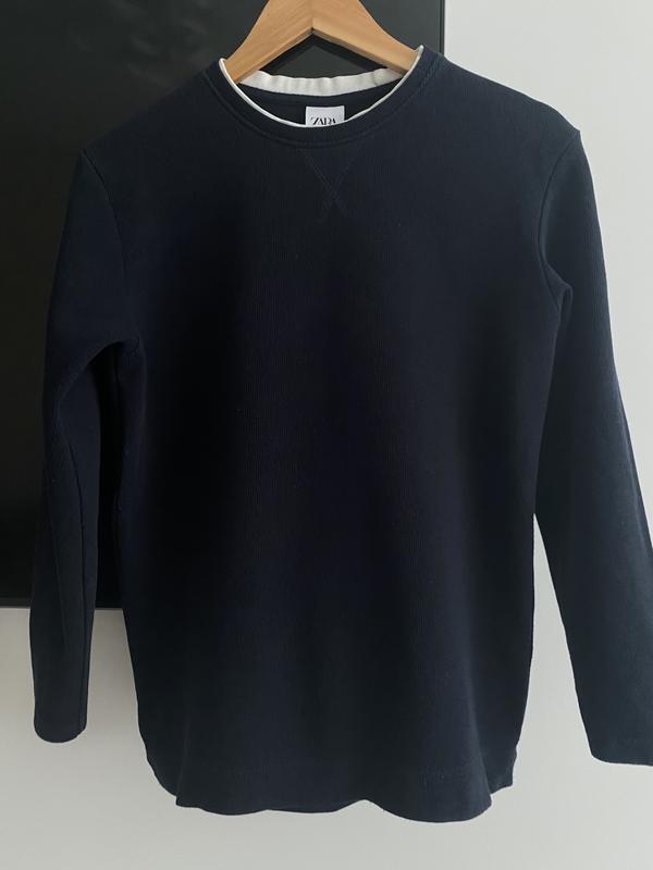Светр в хорошому стані, приємний до тіла, підійде на худенького хлопця або дівчинку, гарний темно-синій колір з акцентним комірцем