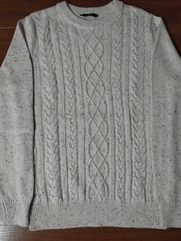 Джемпер с косами George, по бирке разм М, оверсайз, поэтому может подойти и на L точные замеры: длина 72 см под проймой 52 см, рукав 69 см Цвет молочный с вкраплениями цветной пряжи. 80% акрил и 20% полиестер.