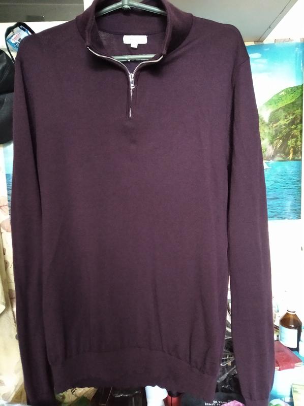 Джемпер в идеальном состоянии( как новый), на молнии у горловины, 100% шерсть, размер 46-48, плечи 47, Пог 56-57, рукав 68, длинна 70. Воротник, на рукавах и по низу - резинка.